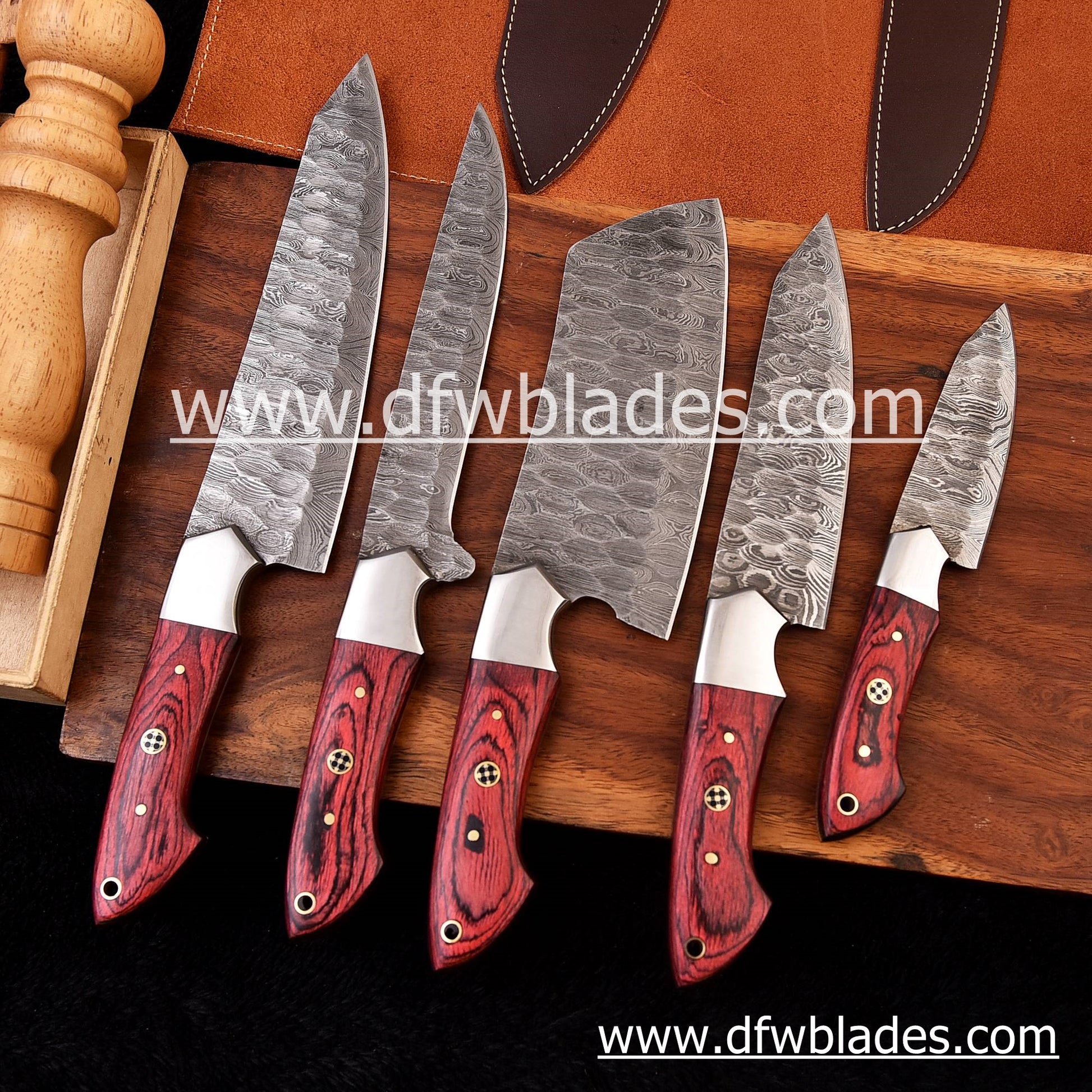 Red handles 5 pcs set- Handmade Damascus Forged steel chef knives set