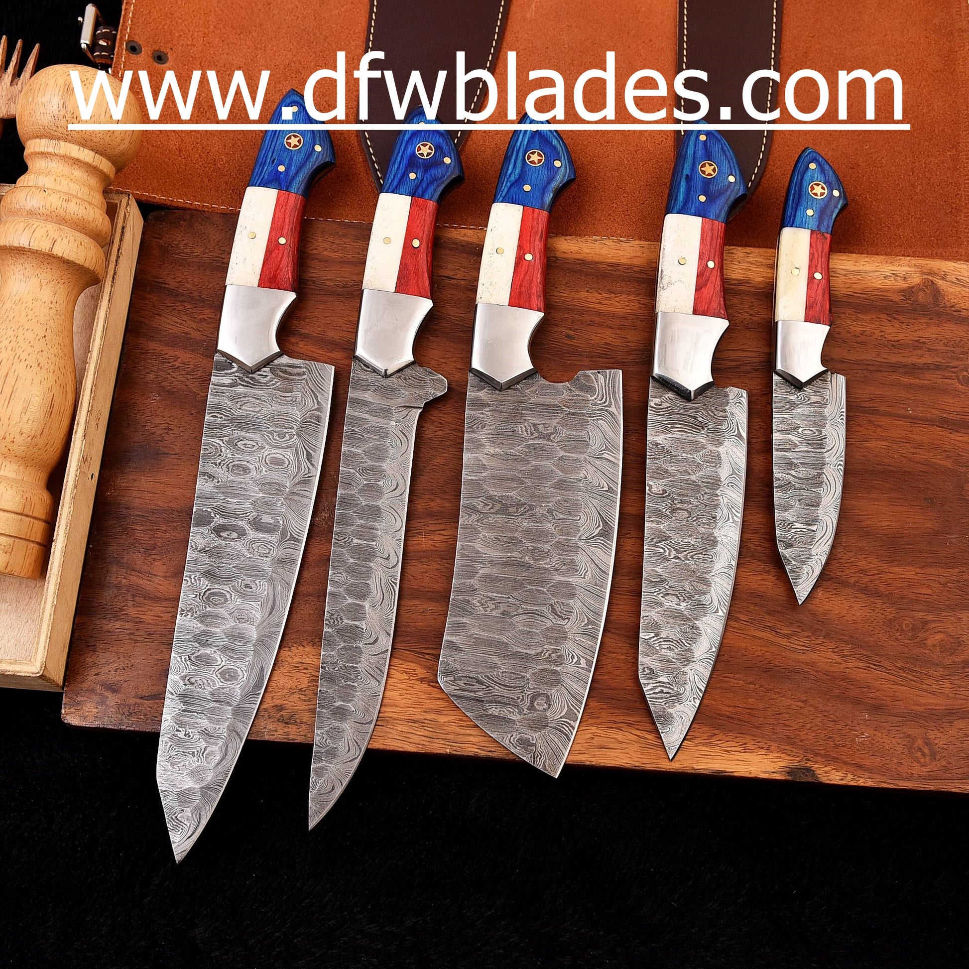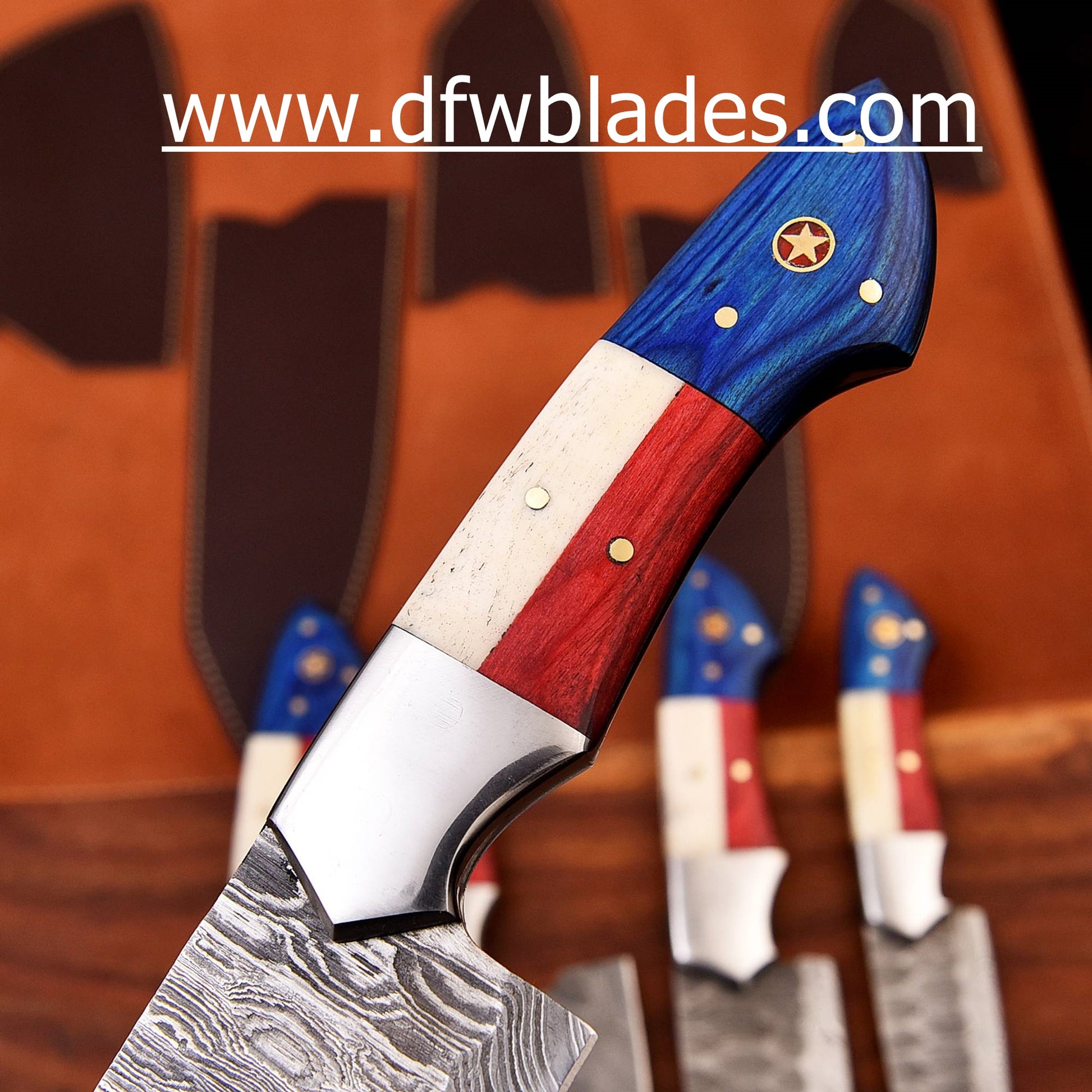 Texas Handles- Handmade Damascus Forged steel chef knives set